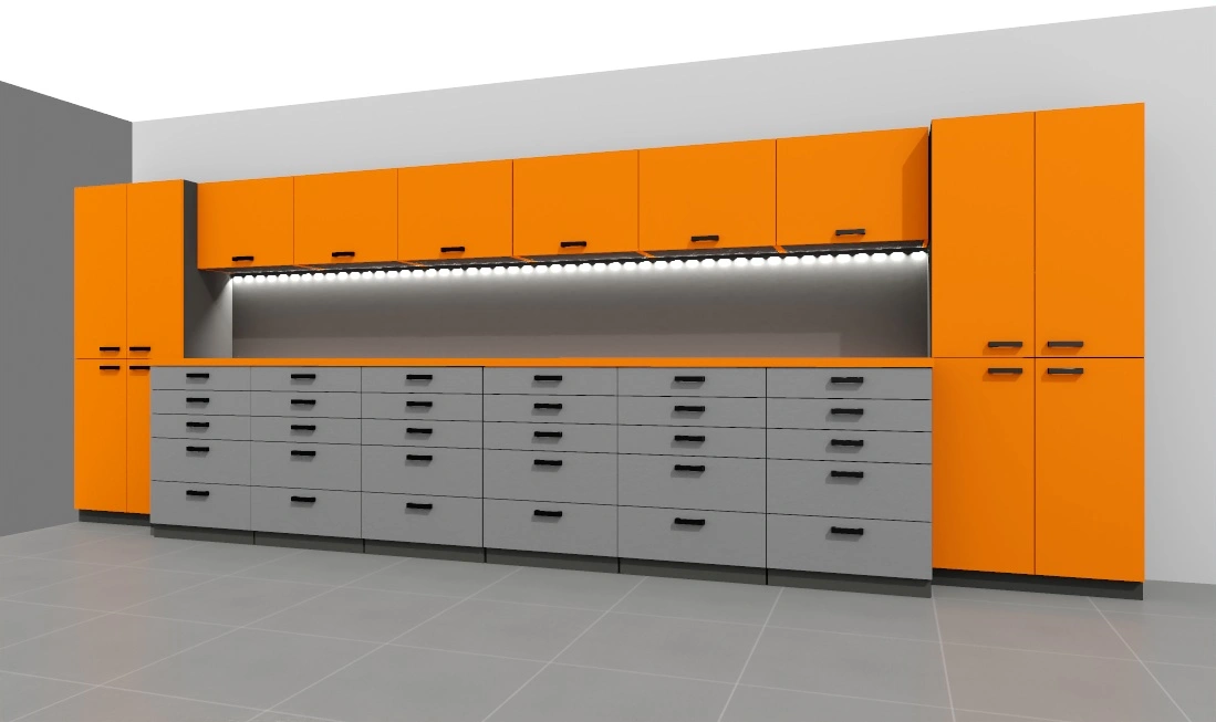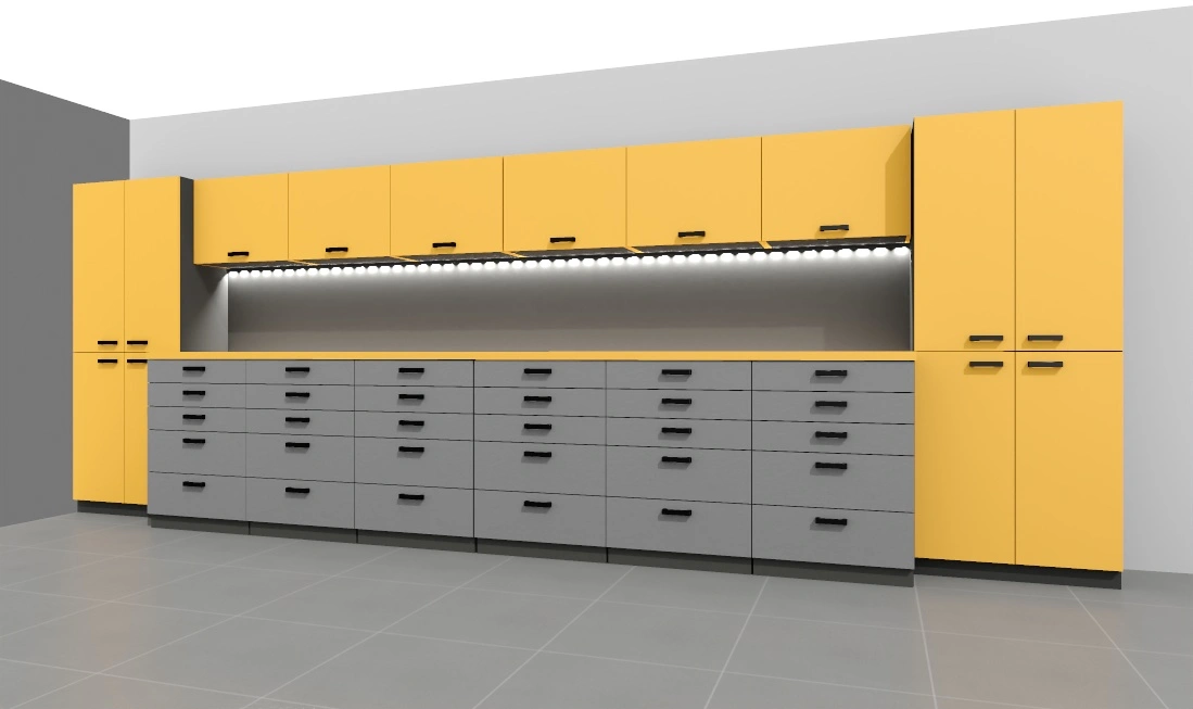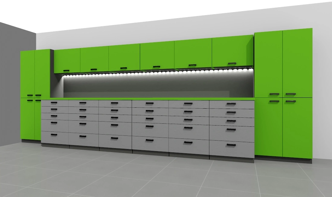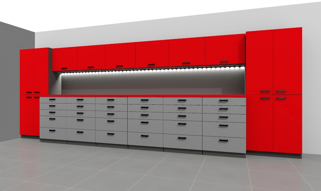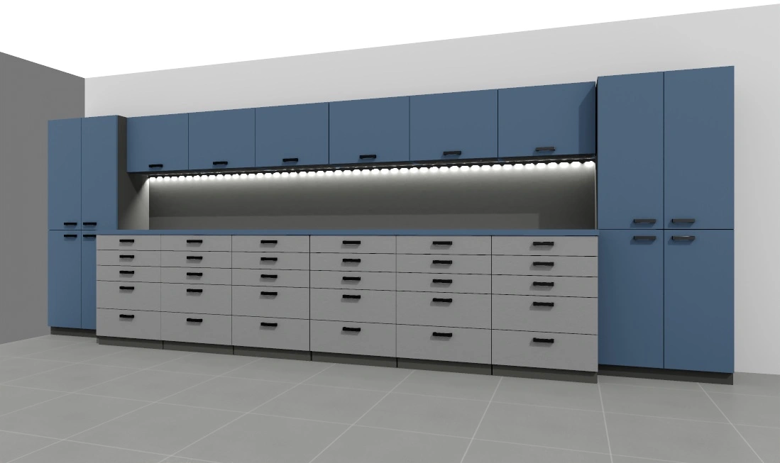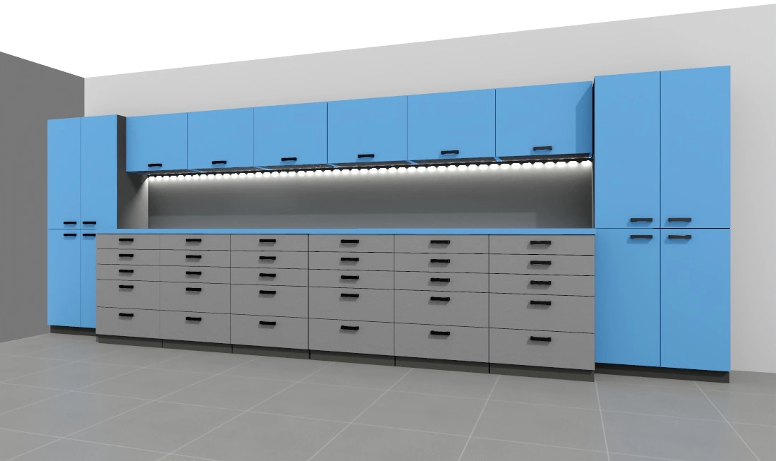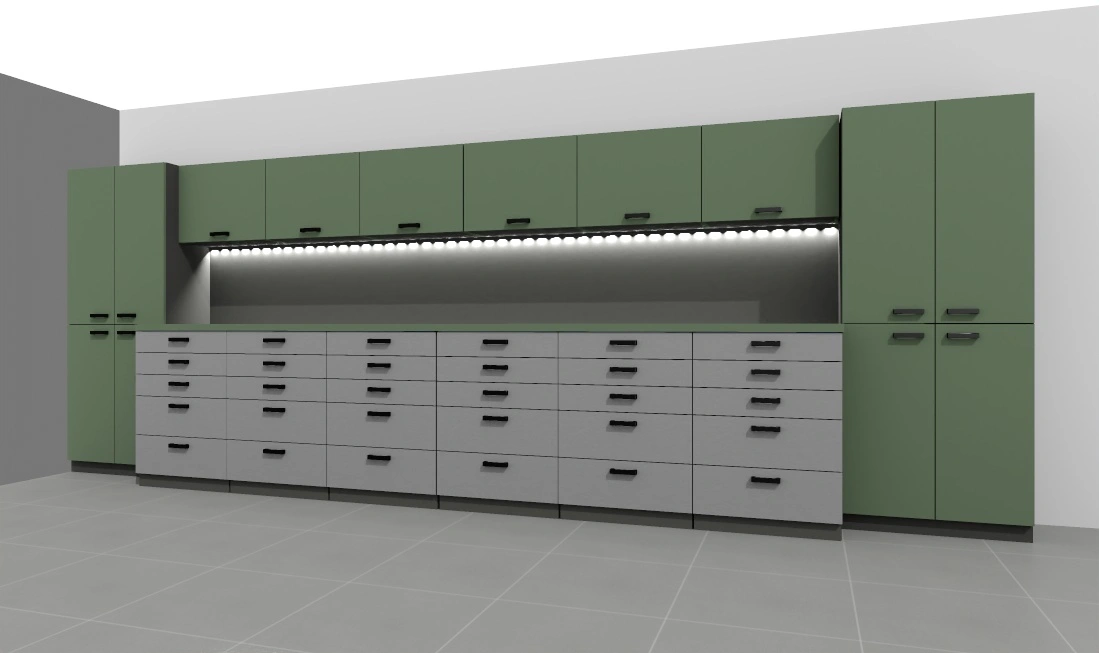 -opcjonalnie listwa led pod szafkami – w cenie, ewentualne gniazda 230V w panelu ściennym biurka – do uzgodnienia