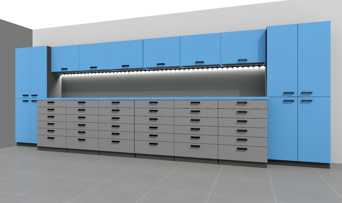 -2x biurko w sumie 36-szuflad, 200/65cm z szafkami górnymi