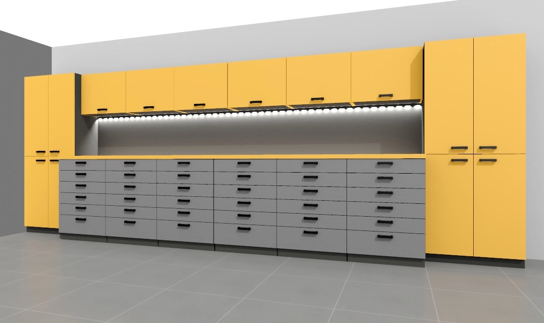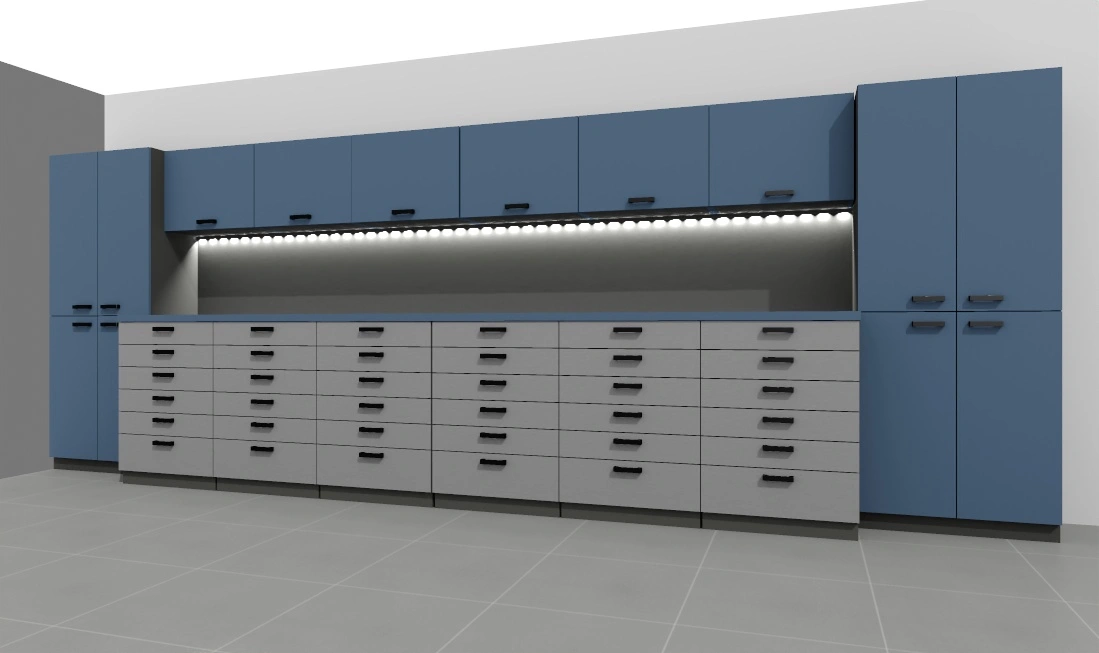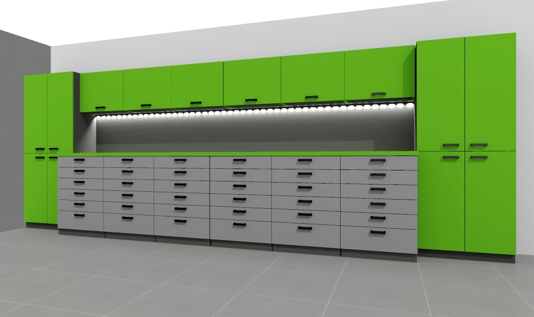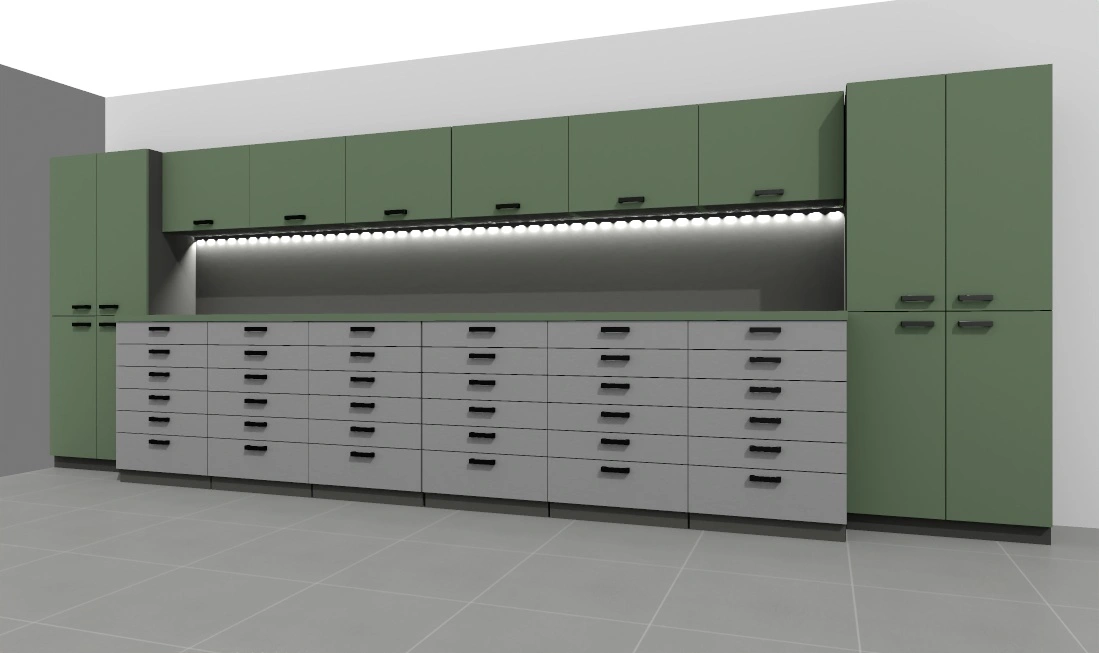 -opcjonalnie listwa led pod szafkami – w cenie, ewentualne gniazda 230V w panelu ściennym biurka – do uzgodnienia